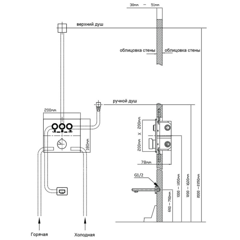 - Размер верхнего душа (ШхВхД): 315х72х210 мм.