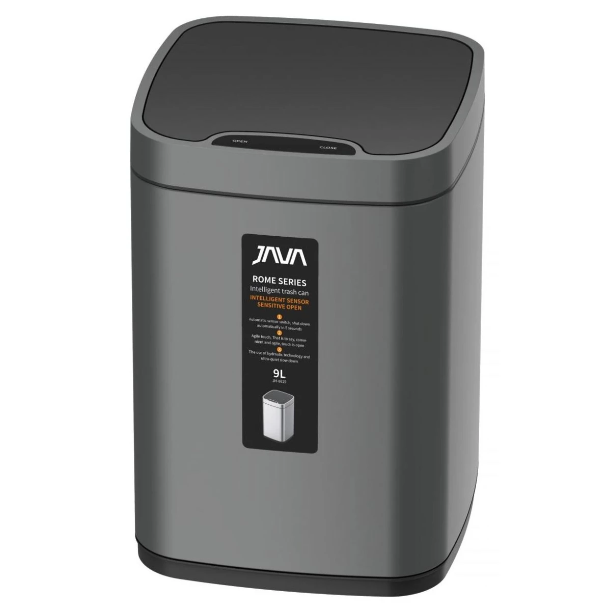 JAVA S-883-9Q Сенсорное ведро для мусора 9 л, цвет графит матовый