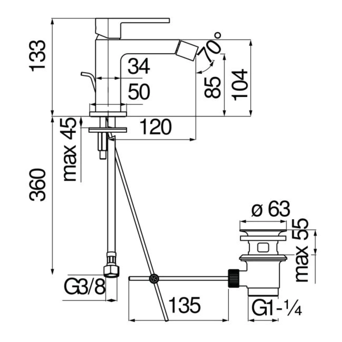 Смеситель Nobili Live LV00119/1BM для биде, с донным клапаном, черный матовый смеситель nobili live lv00119/1bm для биде, с донным клапаном, черный матовый