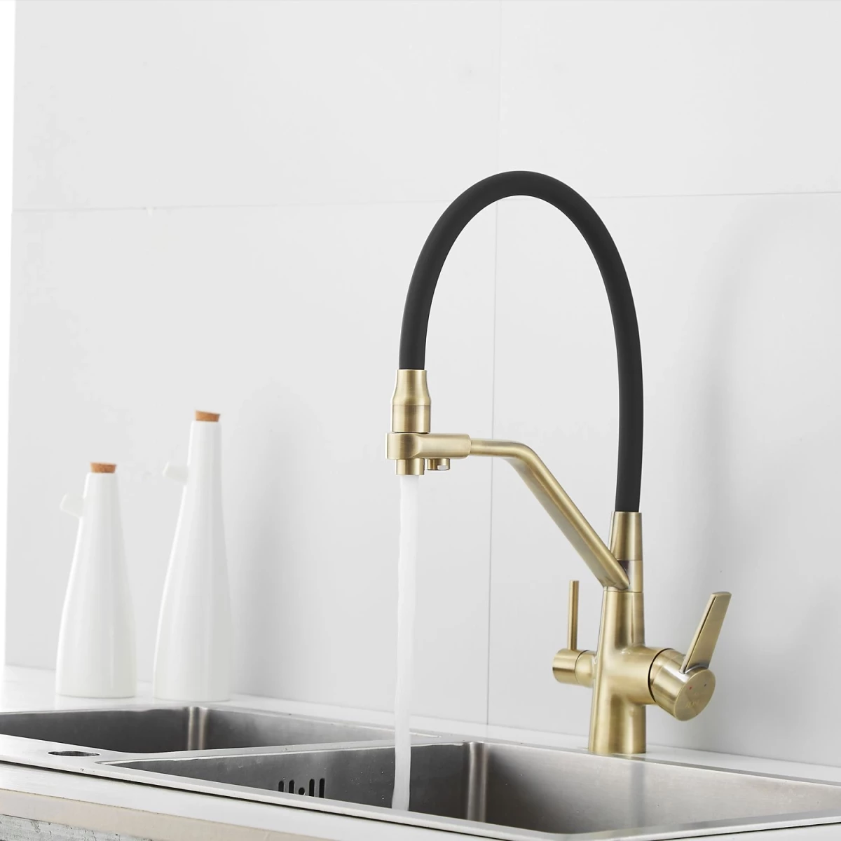 Смеситель Rose R958H для кухни с гибким изливом и подключением фильтра, цвет черный