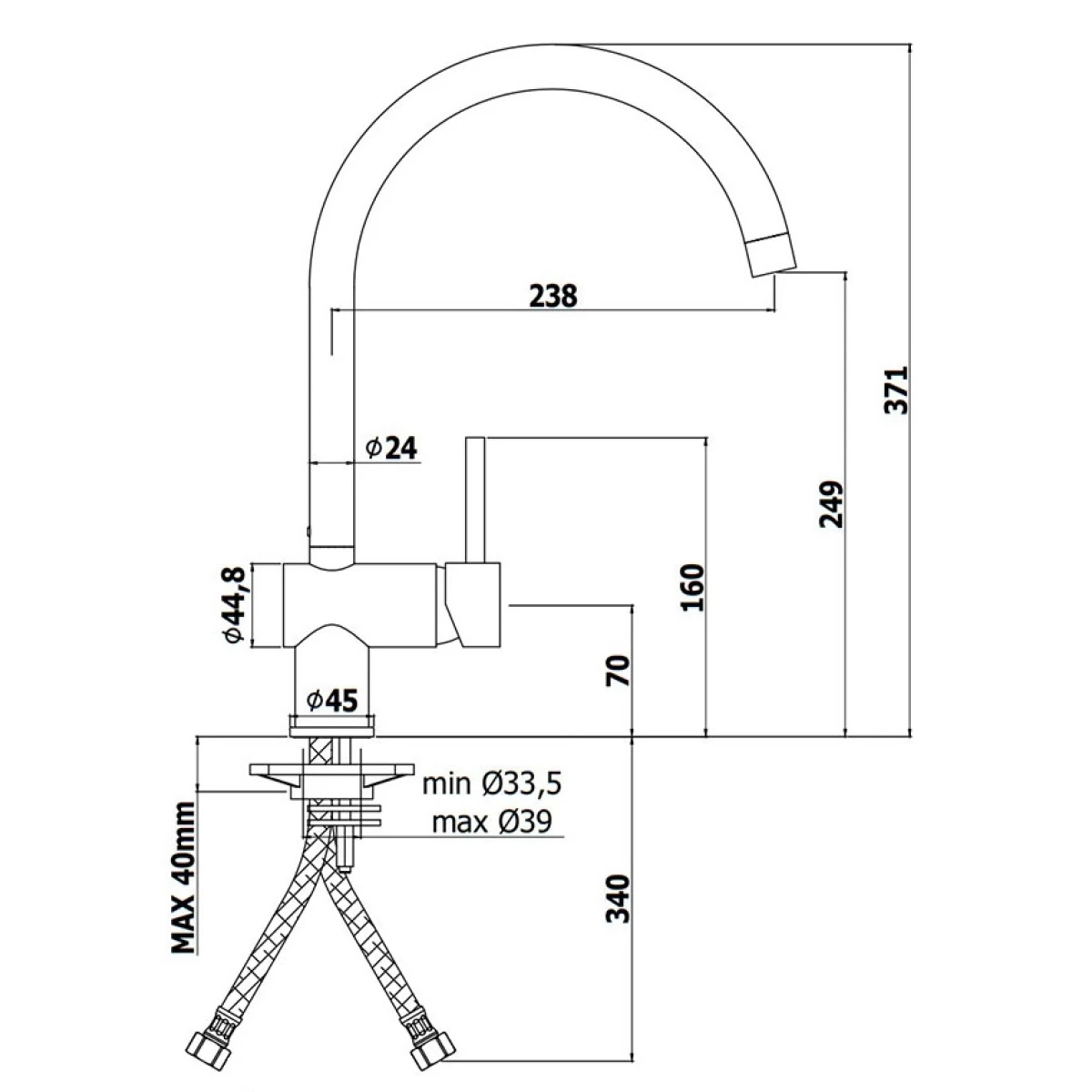 - Высота излива: 24.9 см