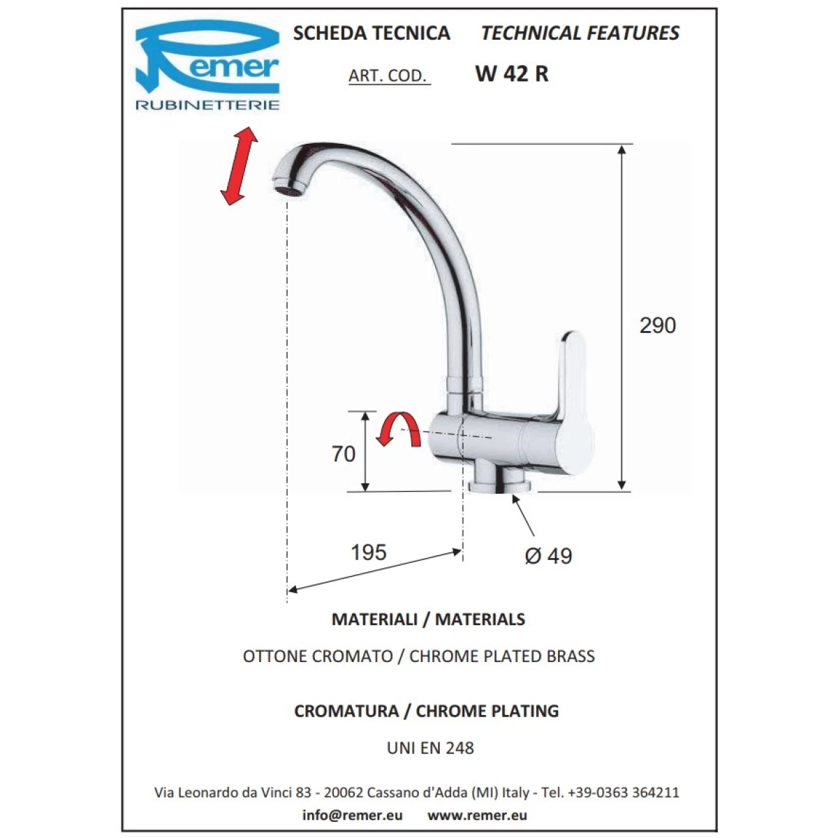 Смеситель для кухни Remer SR543 смеситель для кухни remer sr543